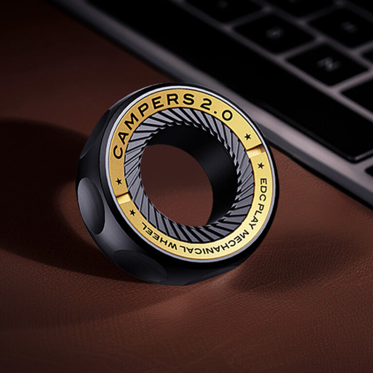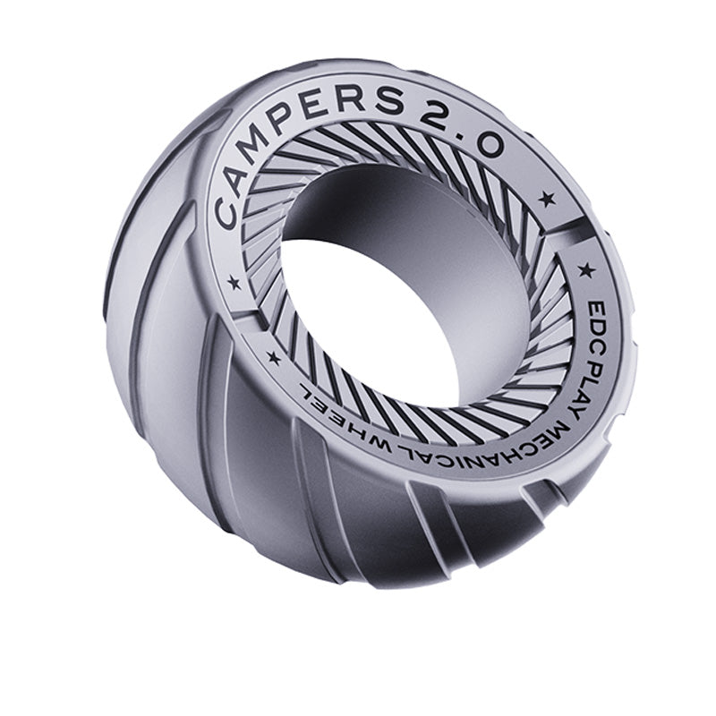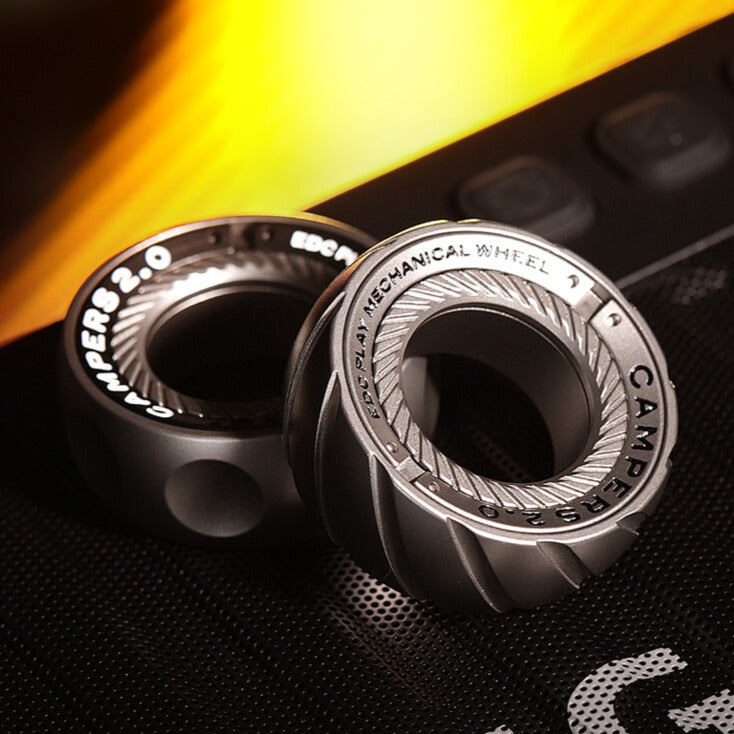 The words on the rim (“Campers 2.0” and “Mechanical Wheel”) indicate a product line focused on compact, engineering-style fidget tools.