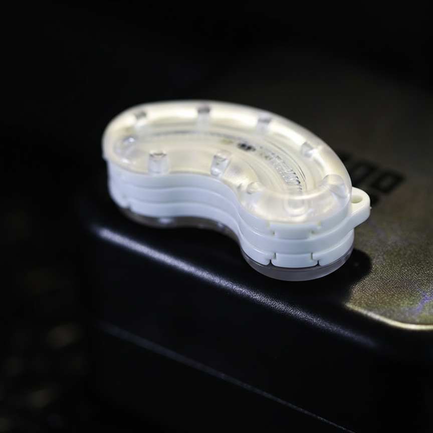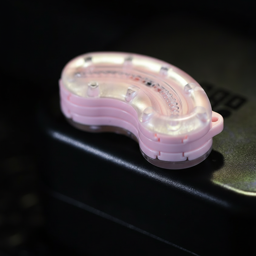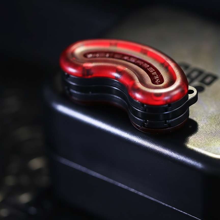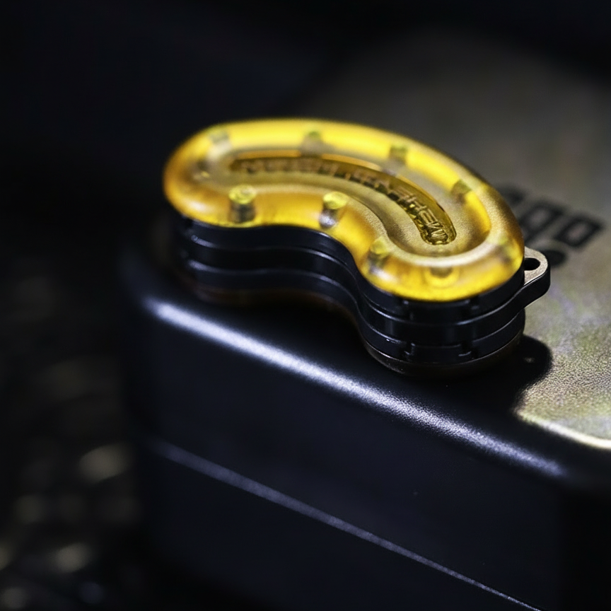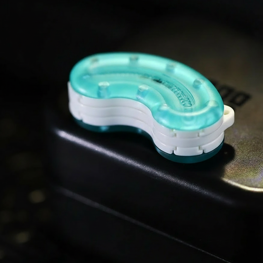This is a compact, handheld fidget slider made of metal-core plastic, designed for smooth tactile movement. The two curved halves slide against each other using magnetic resistance, producing a satisfying click or glide. Its ergonomic “cashew” shape fits naturally between the fingers, making it ideal for discreet fidgeting, stress relief, or collecting.