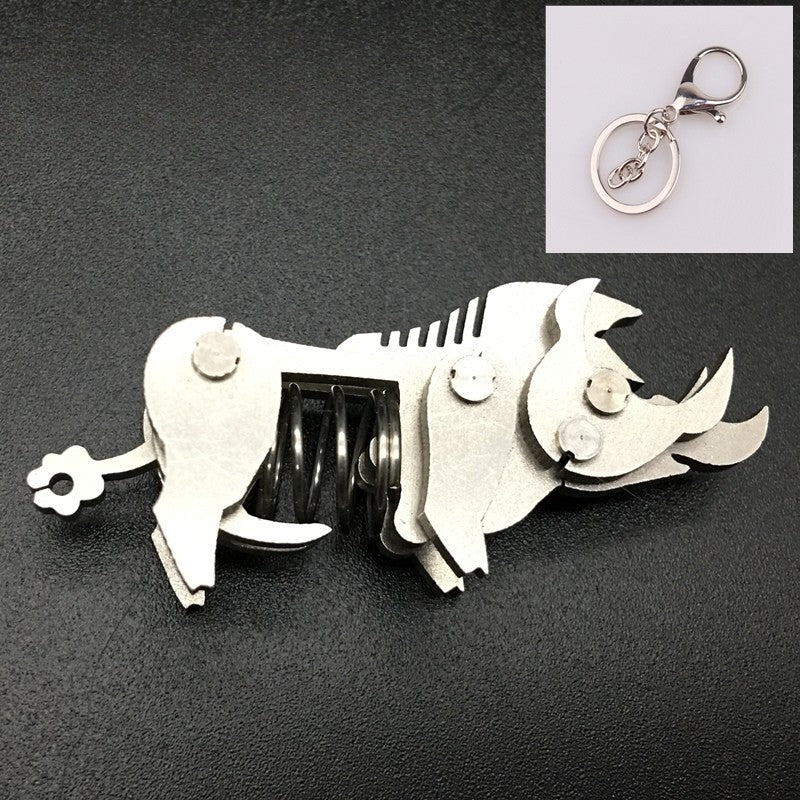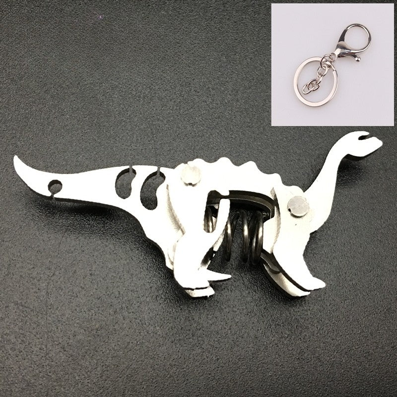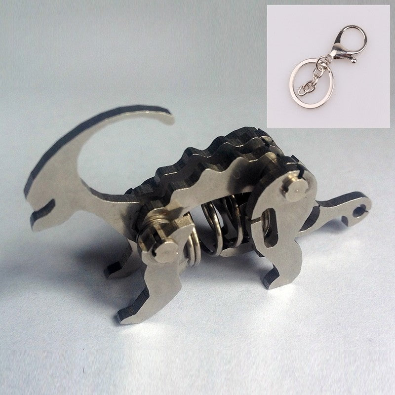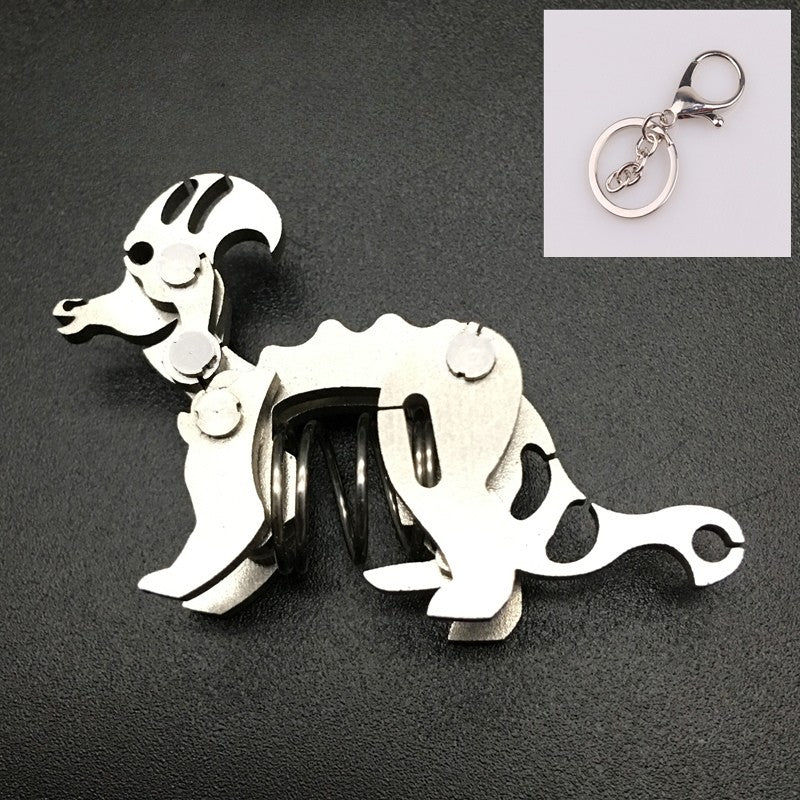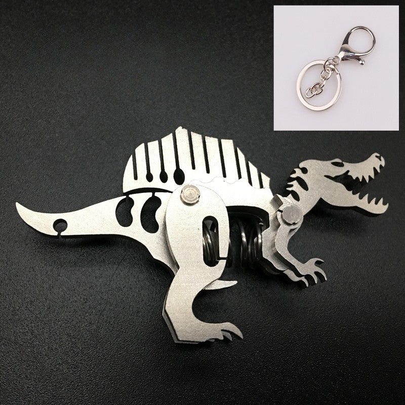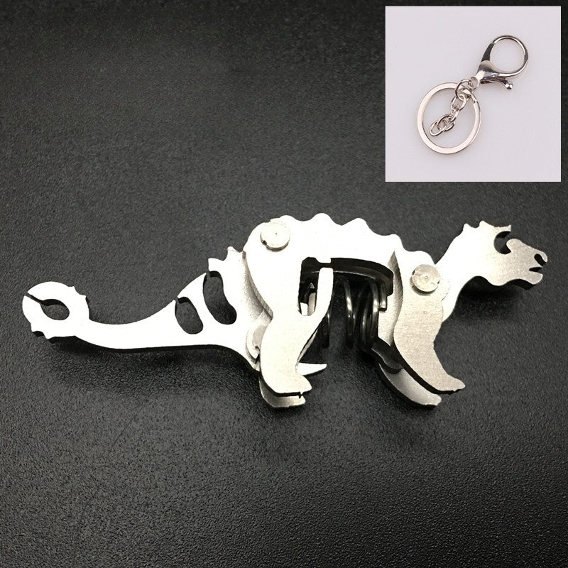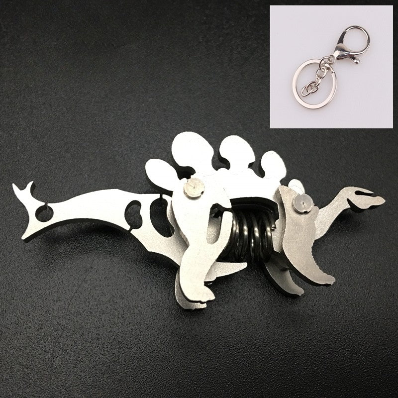 These are miniature spring-loaded metal keychains shaped like different dinosaurs and animals. Each piece is made from layered stainless-steel plates connected with small pivots and a central compression spring. When squeezed, the body flexes and moves slightly, giving it a fun mechanical fidget action. They work as both unique keychains and tiny desk fidget toys, appreciated for their tactile click, compact size, and collectible designs